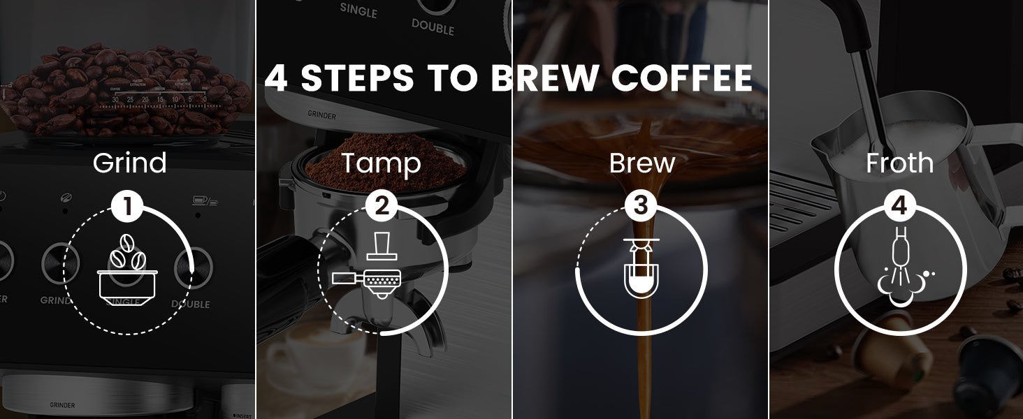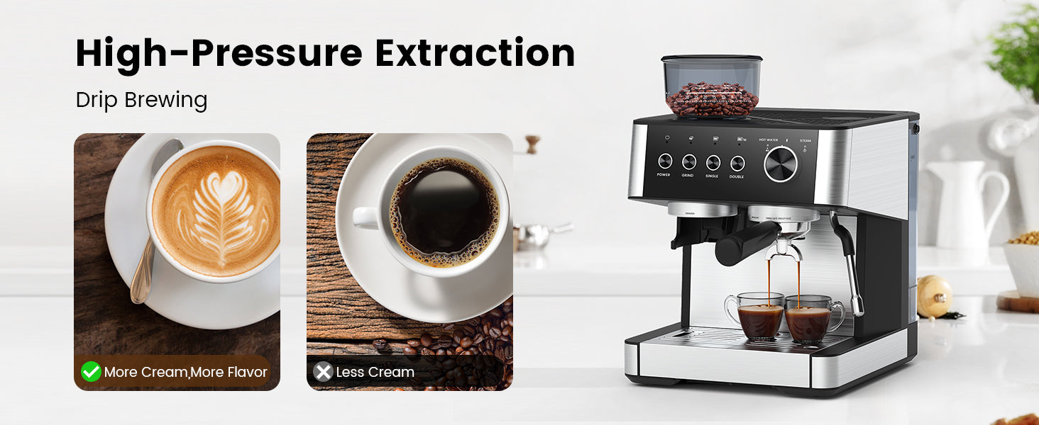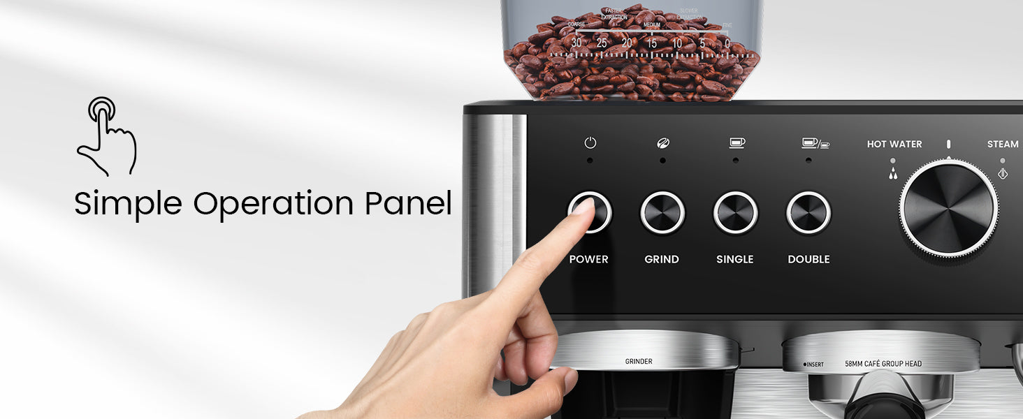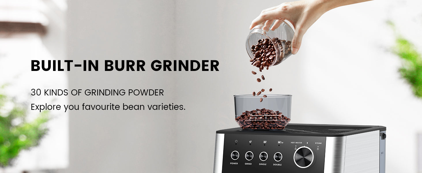 Say goodbye to pre-ground coffee! This espresso machine features a precision conical burr grinder with 30 adjustable settings, allowing you to customize the grind size for optimal flavor and aroma. Freshly ground beans mean fresher, tastier coffee every time.
