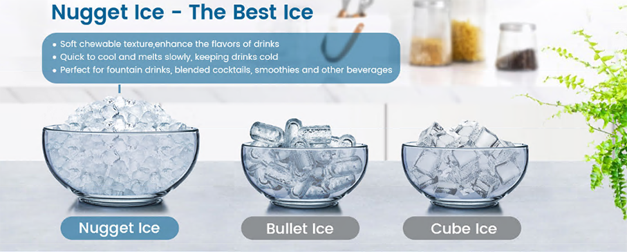 Unlike traditional ice cube trays, our nugget ice maker extrudes water and instantly freezes it into the perfect soft, chewable pellet shape. This ice not only cools your drinks faster but provides a uniquely satisfying texture, giving you a premium beverage experience—right at home.